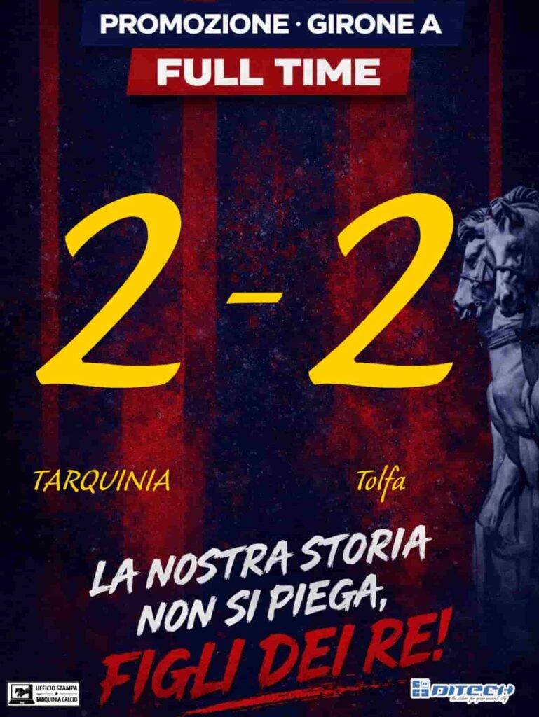 Ma il Tarquinia non è domo e al 25′ Franceschi pareggia. I tarquiniesi si mordono le mani nel finale per la traversa colta da Zolla e un bel tiro di Marcomeni che meritava maggior fortuna.